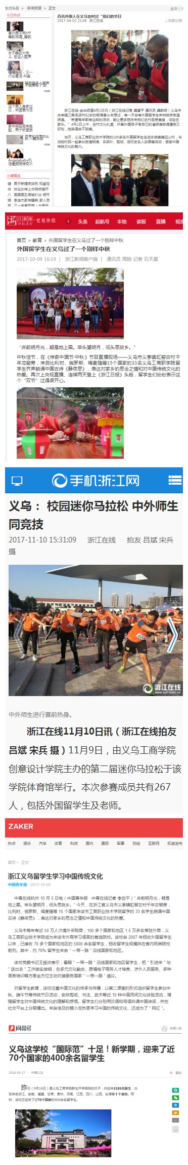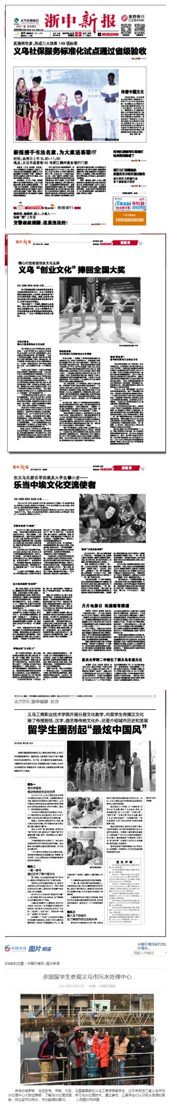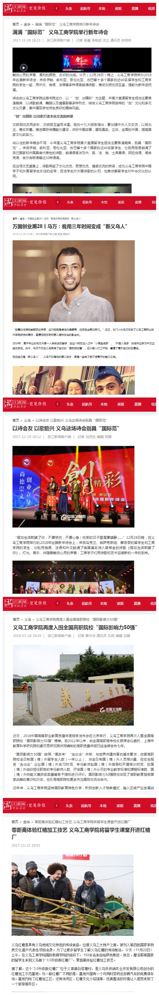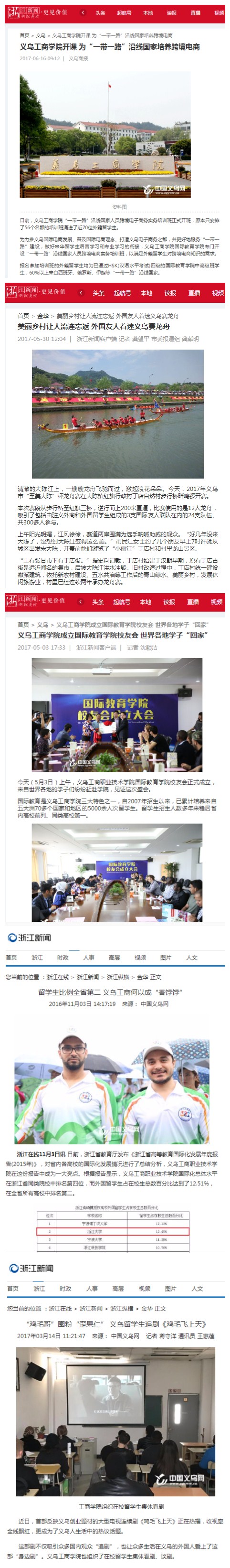 学院国际教育氛围浓厚,曾被中央电视台、浙江电视台、义乌电视台等媒体报道,中国新闻内参、浙江教育报、浙江日报、凤凰新闻网、钱江晚报、金华日报、金华新闻网、中国义乌网、义乌文明网、浙中新报、义乌商报等媒体也多次报道我校国际教育。