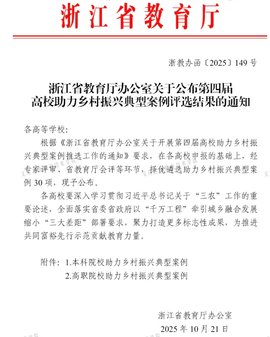 242025.10学校一案例成功入选浙江省教育厅第四届高校助力乡村振兴...