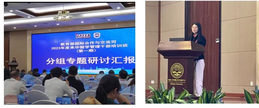 5月31日至6月3日,2023年度来华留学管理干部培训班(第一期)在海南大学顺利举办,此次培训班由教育部国际合作与交流司主办、中国高等教育学会外国留学生教育管理分会承办。来自北京大学、西安交通大学、哈尔滨工业大学等170余所高校的国际学生管理干部参加了此次培训。我校国际教育学院党总支负责人吕君参加了此次培训,作为组长召集研讨并做总结发言。