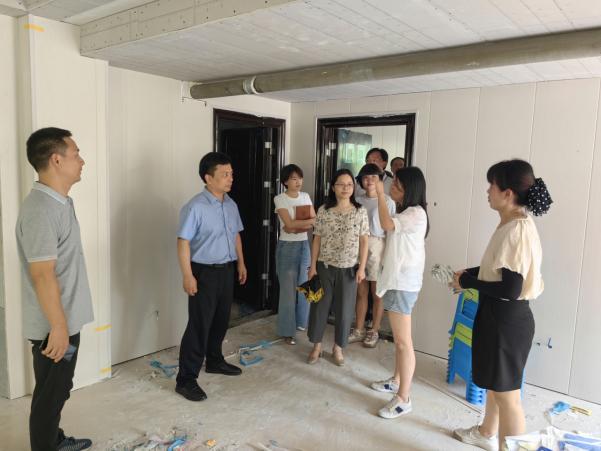 与会人员现场走访丹桂园1、丹桂园4幢、7A公寓,走进公寓辅导员室、楼栋团学活动室改造施工现场,实地查看丹桂书院“一站式”学生社区建设推进情况。