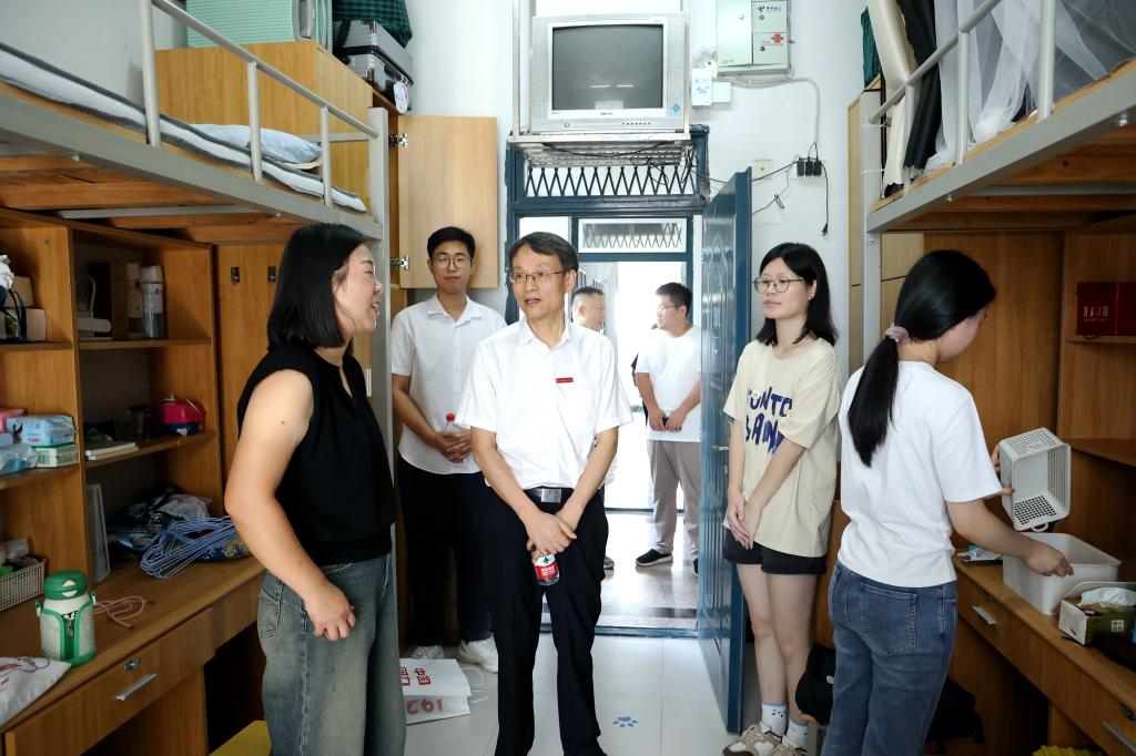 马广指出,各有关部门要以高度的责任感和严实精细的作风扎实做好迎新工作,坚持“以生为本”,优化服务举措,确保新生报到工作安全、有序完成,切实做到让新生满意、家长放心。在二级学院迎新点,马广叮嘱迎新师生工作人员要以热情、细致、周到的服务展现学校高质量的管理水平和有温度的保障服务,在阴雨天气要特别注意新生报到的安全问题,筑牢校园安全防线;在火车站,马广与新生和家长们亲切交谈,了解了他们的交通情况,详细询问新生的入学感受和学习生活需求,并慰问了在火车站辛勤工作的学生志愿者们;在绿竹食堂,马广强调要提高餐厅供餐标准,力求做到餐品健康安全、多样可口,通过高质量的用餐服务给新生和家长留下良好的第一印象。