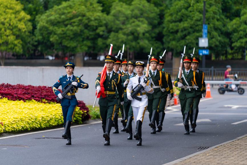 校党委副书记叶斯源参加升旗仪式并讲话。他表示,时值亚运盛会之际,同时也是“八八战略”实施20周年的重要时刻,习近平总书记深入浙江、亲临义乌考察调研,发表重要讲话、作出重要指示。当前,全校上下正深入开展学习贯彻习近平新时代中国特色社会主义思想主题教育。广大义工商青年要以此为契机,深刻认识自身肩负的时代责任、承载的历史荣光,在实现中国梦的生动实践中放飞青春梦想,在为人民谋福利的不懈奋斗中书写人生华章。他勉励广大青年要志存高远、扎根铸魂,做脚踏实地的追梦人,心怀“国之大者”,做好“眼前小事”,将个人的理想信念立于民族大义、系于时代人生,以一人之为融入兴国之征程;要砥砺奋进、守正创新,做信念坚定的笃行者,以习近平总书记对青年大学生要“立大志、明大德、成大才、担大任”的期望为指引,与国家和时代的发展同向同行;要勇于担当、躬身实践,做走在前列的弄潮儿,苦练过硬本领,珍惜韶华、不负青春,以时代思想伟力为引领,用扎实的学识建功新征程。