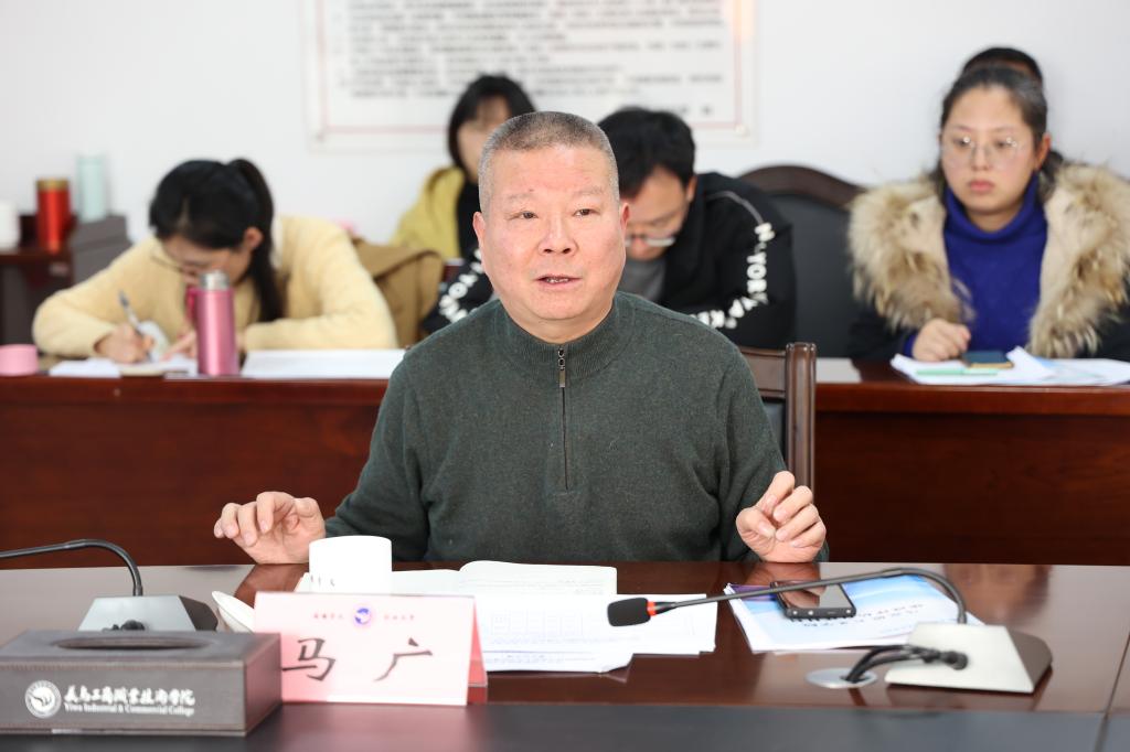 党委书记李昌祖作总结讲话。他指出,推进马克思主义学院建设是落实立德树人根本任务、突出办学质量、提升育人实效的重要举措。要锚定高质量马克思主义学院建设目标,争取建成在全省高职院校中具有一定影响力的高水平马克思主义学院。对于全面推进马克思主义学院建设,他强调,一是要提高思想认识,充分领会新时代加强马克思主义学院建设的战略意义。马克思主义学院负责人要将《标准》文件精神和学校党委会会议精神传达给学院的全体教师,力求所有思政教师心往一处想,劲往一处使,为马克思主义学院建设水平的提高贡献自己的力量;二是要把握《标准》要求,努力确保马克思主义学院建设任务落地落实。要立足学校马克思主义学院建设的历史方位和定位,全方位的谋划推动部署,按照“增优势、建特色、补短板、提质效”的思路,全面落实《标准》要求,高标准推进马克思主义学院建设;三是聚焦特色发展,扎实推动马克思主义学院内涵式高质量发展。要强化马克思主义学院二级党委的主体责任,在推进思政课改革创新、打造高素质思政教师队伍、充分发挥服务地方的优势、构建“大思政课”育人格局等方面持续发力。