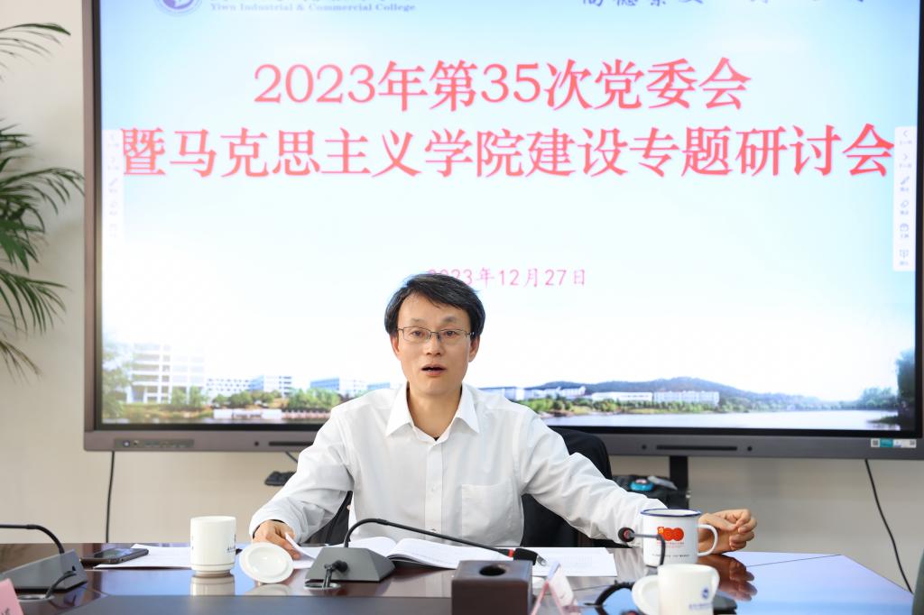 党委书记李昌祖作总结讲话。他指出,推进马克思主义学院建设是落实立德树人根本任务、突出办学质量、提升育人实效的重要举措。要锚定高质量马克思主义学院建设目标,争取建成在全省高职院校中具有一定影响力的高水平马克思主义学院。对于全面推进马克思主义学院建设,他强调,一是要提高思想认识,充分领会新时代加强马克思主义学院建设的战略意义。马克思主义学院负责人要将《标准》文件精神和学校党委会会议精神传达给学院的全体教师,力求所有思政教师心往一处想,劲往一处使,为马克思主义学院建设水平的提高贡献自己的力量;二是要把握《标准》要求,努力确保马克思主义学院建设任务落地落实。要立足学校马克思主义学院建设的历史方位和定位,全方位的谋划推动部署,按照“增优势、建特色、补短板、提质效”的思路,全面落实《标准》要求,高标准推进马克思主义学院建设;三是聚焦特色发展,扎实推动马克思主义学院内涵式高质量发展。要强化马克思主义学院二级党委的主体责任,在推进思政课改革创新、打造高素质思政教师队伍、充分发挥服务地方的优势、构建“大思政课”育人格局等方面持续发力。