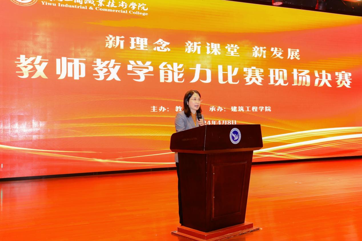 2024 年学校教师教学能力比赛现场决赛在丹溪文化厅顺利举行。 院长马广、副院长盛湘君、教务处、教育督导处、二级学院相关领导、 学校督导员及骨干教师共 200 余人现场观摩。比赛特邀校外资深专家和各二级学院教学工作负责人担任现场评审。