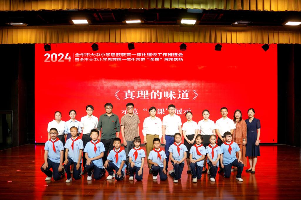 现场,来自义乌市江东第一小学、义乌市后宅中学、义乌市青岩书院、义乌工商职业技术学院的教师代表共上一堂思政“金课”,他们围绕“探寻真理味道,传承信仰火炬”的主题,根据不同学段和学情同题异构、定位特色鲜明,为探索全市大中小思政一体化建设路径贡献了义乌力量。