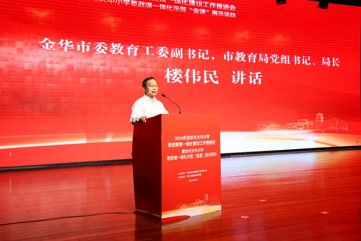 5月28日上午,2024年金华市大中小学思政教育一体化建设工作推进会暨全市大中小学思政课一体化示范“金课”展示活动在义乌工商职业技术学院举行。浙江省教育厅宣教统战处调研员葛红敏,金华市委教育工委副书记,市教育局党组书记、局长楼伟民,金华市委宣传部部务会议成员、市新闻出版局局长戴敦建,义乌市委常委、宣传部部长朱有清,义乌工商职业技术学院党委书记李昌祖等领导出席会议。