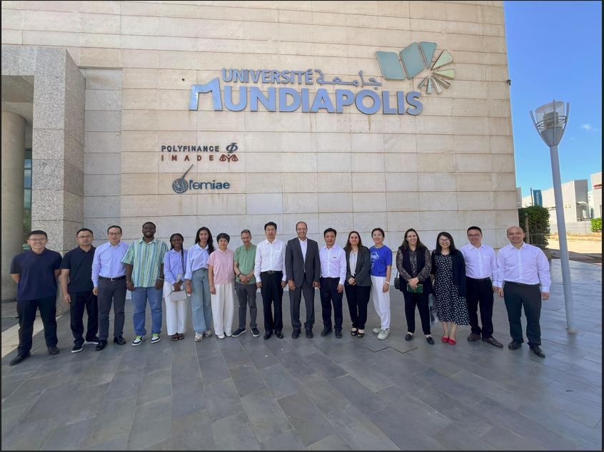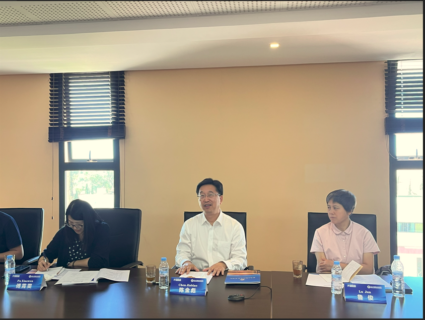 近日,浙江省人大常委会党组书记、副主任陈金彪率团莅临我校海外分校——摩洛哥义乌商学院调研。浙江省人大常委会秘书长鲁俊、浙江省人民政府外事办公室副主任陈江风等陪同调研。蒙迪亚波利斯大学校长巴尔卡维、副校长萨米尔、商学院院长拉米亚、中北非国际教育创新联盟副主席马祖兹,学校党委副书记叶斯源、外语外贸学院、国际处相关工作负责人、派驻摩洛哥义乌商学院教师及学生代表参加调研座谈会。