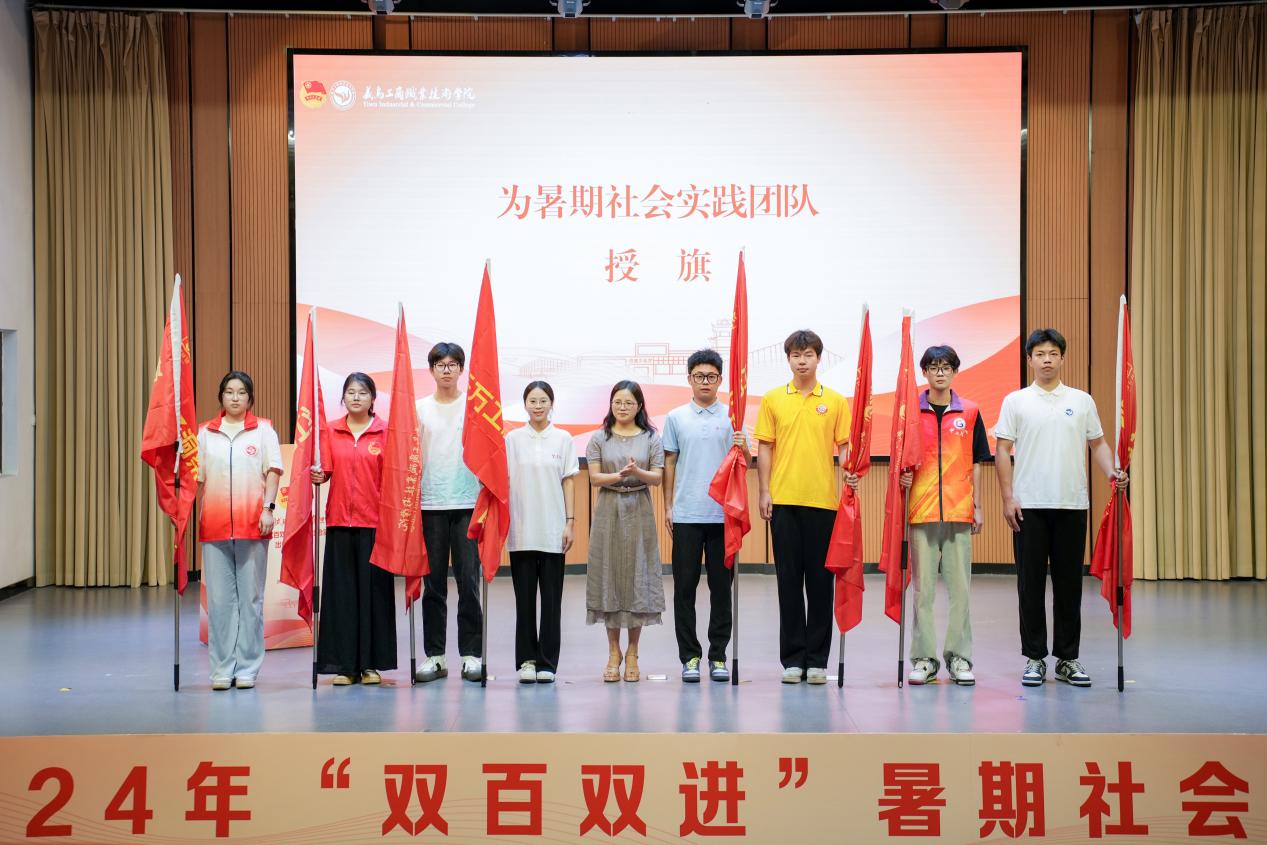 7月8日上午,我校2024年“双百双进”暑期社会实践出征仪式在麦穗报告厅举行。校党委委员、副院长徐美燕出席仪式并讲话。校宣传部、学生处、团委等相关部门负责人,二级学院学生工作分管领导、团委书记,实践团指导老师代表、学生代表等参加仪式。