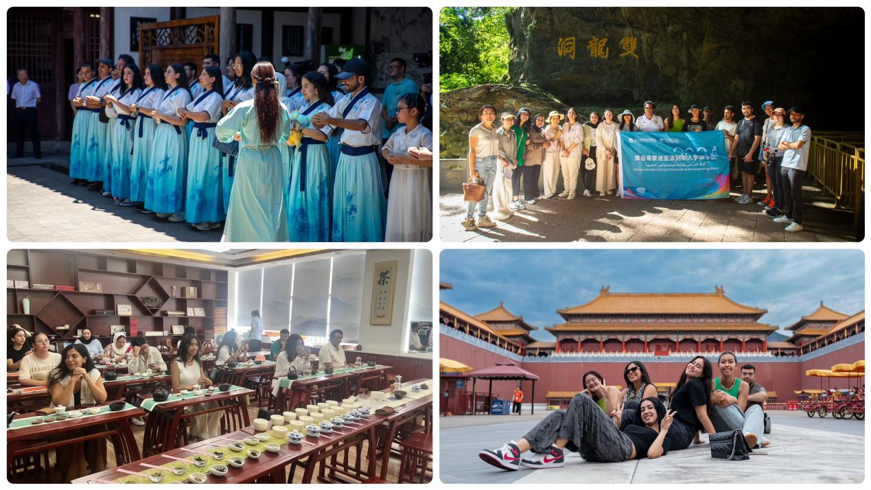 此外,他们来到金华山,探寻婺州文化的深厚底蕴,参观黄大仙祖宫,开启共享和谐祈福之旅,游览云中溪、双龙洞等自然美景,体验双龙卧舟的新奇独特,山色灵秀、溶洞奇绝令学员们直呼“Amazing!”;在横店明清宫苑,感受中国古代建筑之美和东方韵味的影视文化;在浙江省博物馆,穿越时空,探索宋韵文化的独特魅力与民俗文化的丰富内涵。学员们边走边看,不时驻足留影,在这些名胜古迹中体验中华文化的源远流长与博大精深。ICHRAQ ESSADEQ非常喜爱中国传统文化,“此次亲身体验了中国悠久而丰富的历史遗产,更让我们深刻体会到全球联系的重要性和教育的价值。”