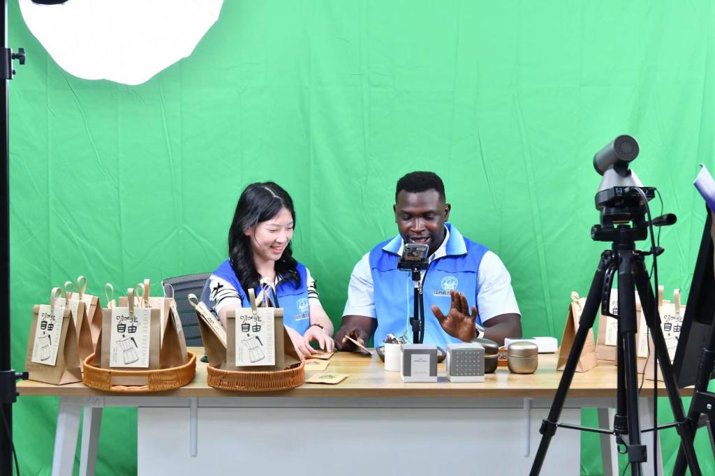 西蒂维尼·兰布卡一行详细了解了学校国际创客园国际学生创业孵化、文化交流、志愿服务、国际传播等工作开展情况,观看了中外创业团队跨境电商现场直播,与国际创业学生代表、外语外贸学院多语种跨境电商直播创业导师亲切交流。