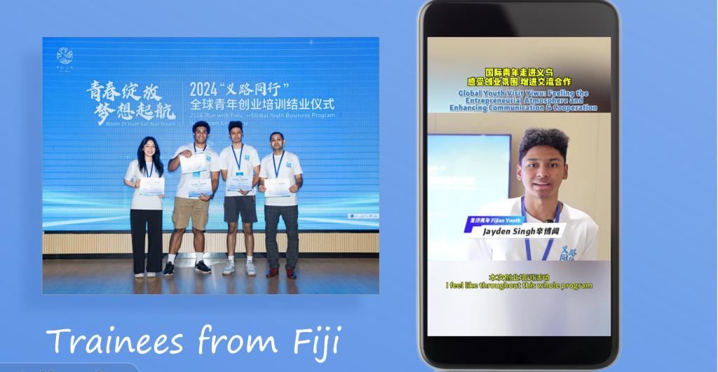 来自马里、也门、乌兹别克斯坦三个国家的国际创业学生代表斯迪卡、卡森、飞龙分享了小商品进出口贸易、电商直播、中国购物平台本土化等创业项目和心得。国际教育学院相关负责人汇报了学校办学历史、人才培养规模和“以创立校,城校相荣”的特色办学之路,重点介绍了政校企合作运营国际创客园开展创客培育、电商技能培训,服务市场产业发展、扶贫助农,“义路同行——全球青年创业培训”等面向境外培训项目等工作成效。4名斐济青年受邀参加了2024“义路同行——全球青年创业培训”,在我校国际创客园及校外双创基地开展双创实践,斐济学员以视频方式分享了创业培训体会和收获。