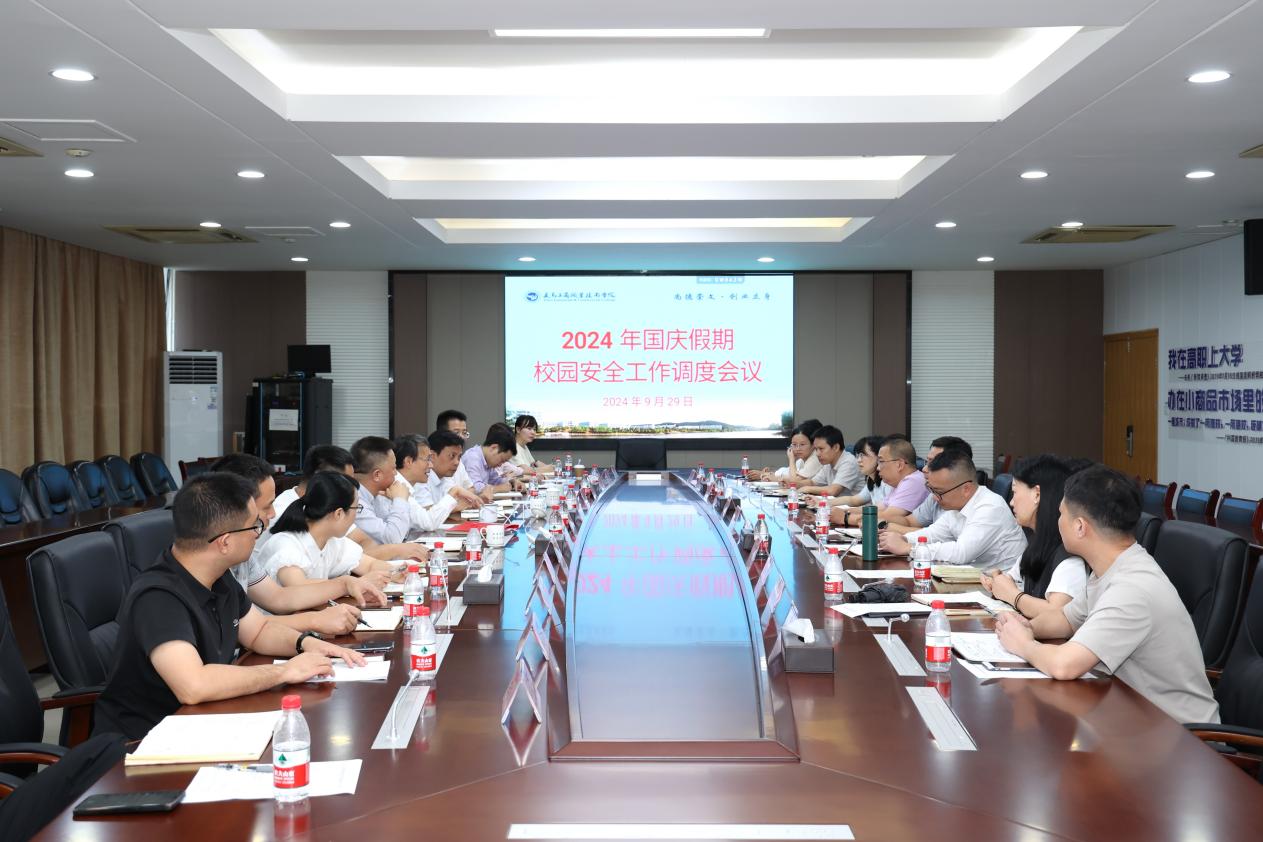 9月29日下午,学校召开2024年国庆假期校园安全稳定工作调度会议。校领导李昌祖、叶斯源、樊曜、郑伟俊出席会议,相关职能部门负责人和各二级学院党组织负责人参加会议。