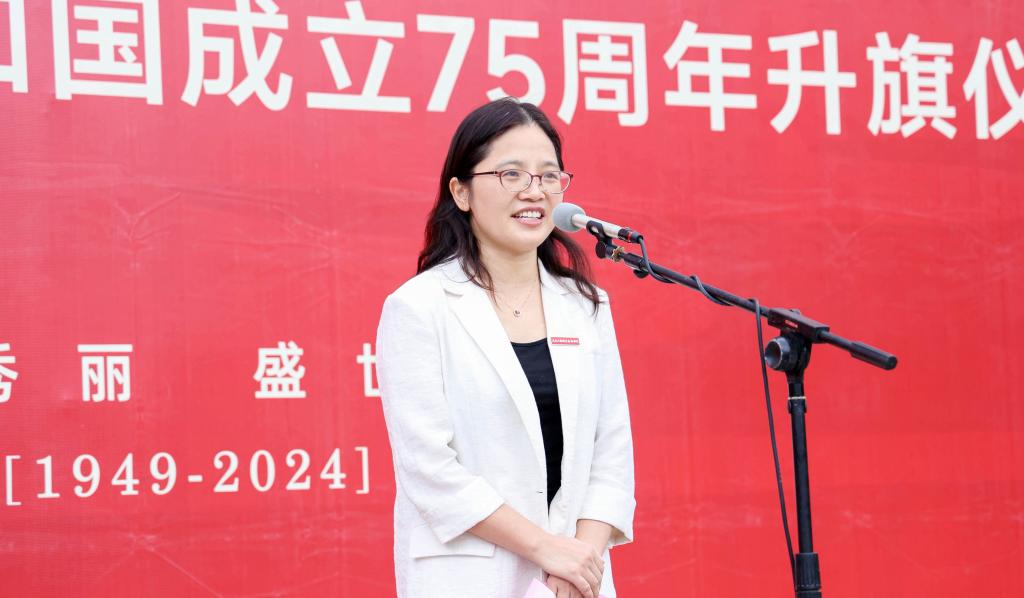校党委委员、副院长徐美燕参加升旗仪式并讲话。她表示,国家发展取得的巨大成就,是青年成长的坚实基础;党和国家对青年的高度重视,是青年成才的重要保证。青年是新时代的见证者,更应该是创造者。她向同学们提出三点希望:一是“挺立”潮头,以“有理想”的“硬气”锚定目标、强化历练,做信念坚定的青年之才。希望同学们自觉与时代浪潮同频共振,与民族复兴同向而行,将个人“小我”融入国家、民族的“大我”之中,使爱国主义精神始终富有时代气息。二是“挺直”腰板,以“敢担当”的“硬功”笃行不怠、一往无前,做勤学善思的青年之才。希望同学们以更加饱满的热情投入学习,以更加深邃的思考深化学习,以创新的姿态应对时代的挑战。三是“挺拔”身姿,以“肯奋斗”的“硬拼”善作善成、攻坚克难,做躬耕实践的青年之才。希望同学们把“气”提起来、把“心”沉下来、把“劲”使出来,以坚韧不拔的意志品质,在义乌这片创业热土上追梦逐梦,成就更有意义的大学生活。