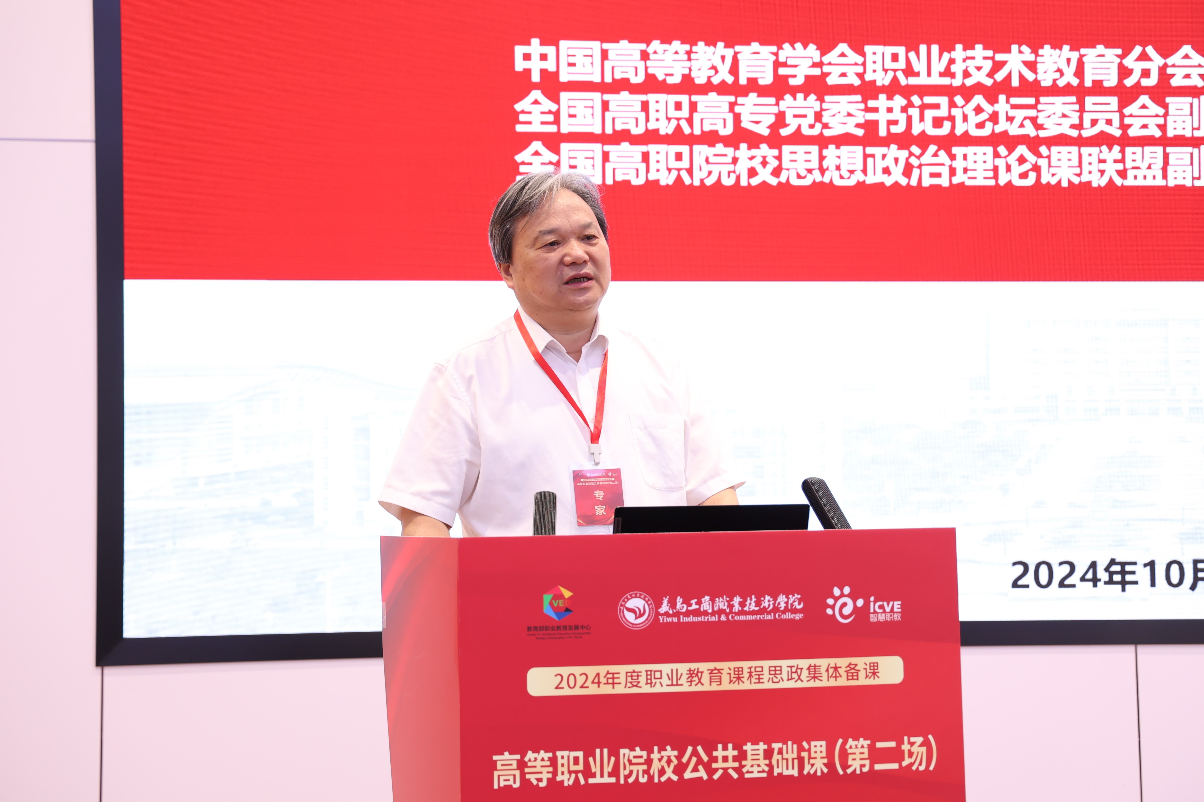 10月17日,2024年全国职业院校公共基础课课程思政集体备课会在我校成功举办。与会领导和嘉宾有教育部职业教育发展中心副主任黄辉,义乌工商职业技术学院院长马广,浙江金融职业学院发展咨询委员会主任周建松教授,济南职业学院党委委员、副校长蒋雪艳教授,义乌工商职业技术学院党委委员、宣传部部长郑伟俊,浙江师范大学外国语学院大学外语教研部主任骆巧丽教授,线上线下共2300余人次观看本场集体备课会。义乌工商职业技术学院副院长盛湘君主持会议。