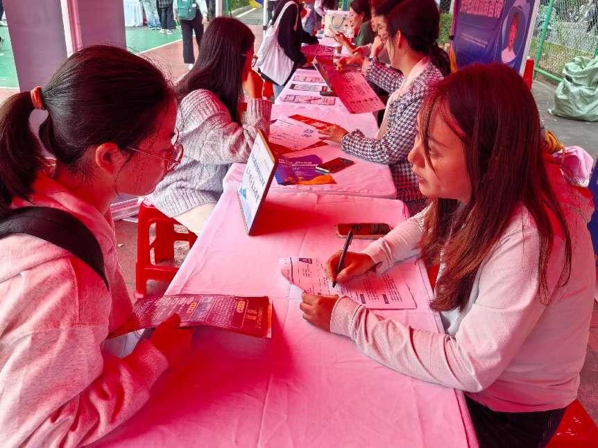 本次招聘会聚焦多渠道挖掘就业岗位,吸引了商城集团、陆港集团、天派针织、商翔集团等省内外250余家企业到场参会,涵盖电商、教育服务、国际贸易、银行、机械制造等多个领域。活动现场,用人单位认真介绍企业情况和招聘岗位,仔细查阅学生简历并进行现场面试。招聘会共有4000余名学生进场求职,同学们手持精心准备的简历,与企业招聘负责人就岗位内容、职业前景、薪资待遇等问题进行面对面沟通洽谈。本次活动所有招聘信息同步发布在学校就业网站,为人才需求对接提供便捷渠道。