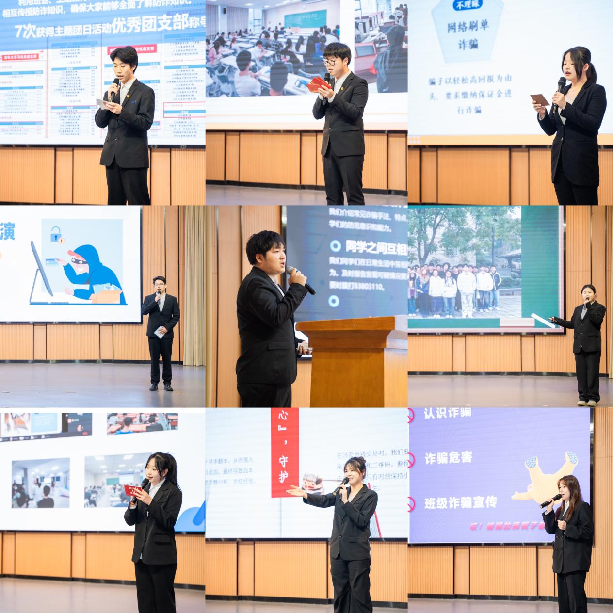 本次活动历时近2个月,分集中建设、评比验收、展示交流三个阶段开展,共18个班级脱颖而出。评选活动现场,各评选班级以图文并茂的PPT汇报和视频展示形式,重点围绕一年来班级的防诈反诈宣传活动、反诈成果、特色亮点、未来计划等展开详细讲述,并相互交流开展反诈防诈工作的好经验、好做法。