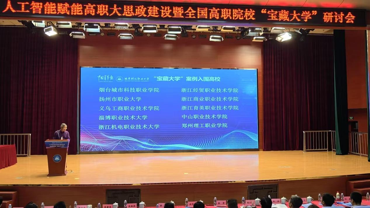 4月24日-26日,由中国青年报社主办的人工智能赋能高职大思政建设暨全国高职院校“宝藏大学”研讨会在北京召开,现场公布了全国高职院校“宝藏大学”优秀案例,学校申报的《“义小创” 向未来——基于“同学同创”模式服务大学生高质量就业创业项目》《立足市场 开展“政园行企校”协同育人,探索市域产教联合体的“义乌模式”》两个案例入选。