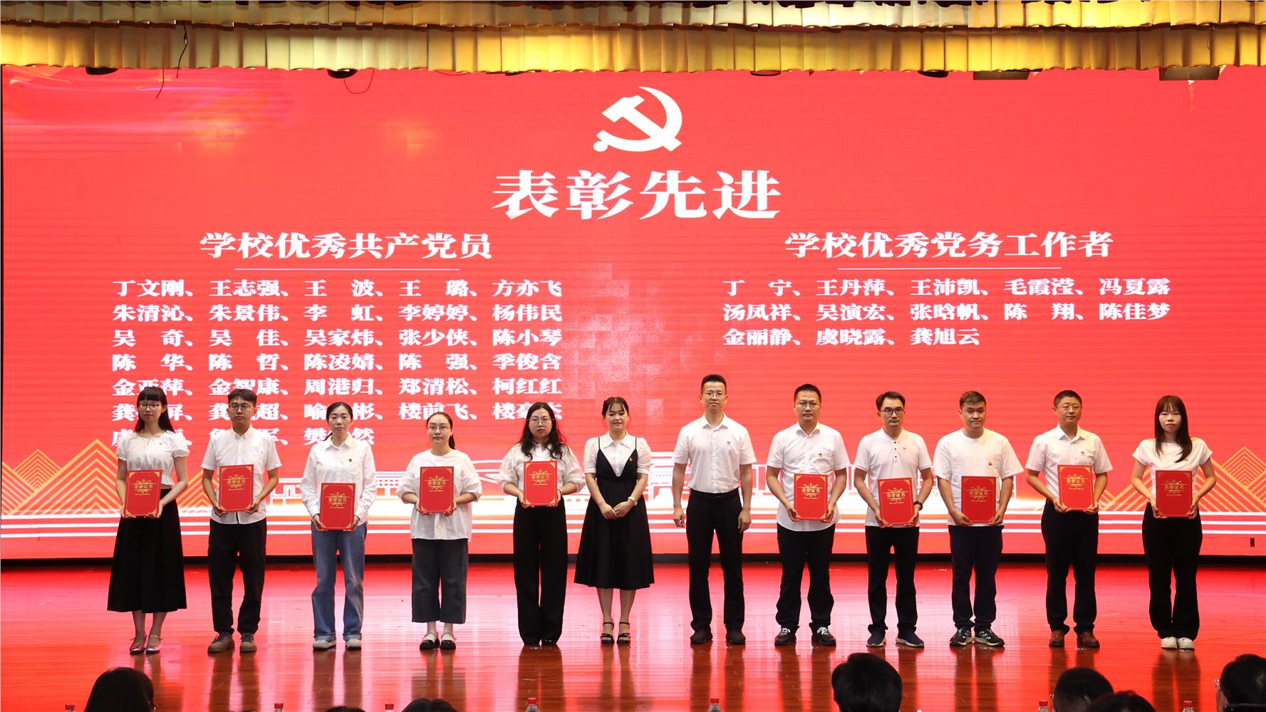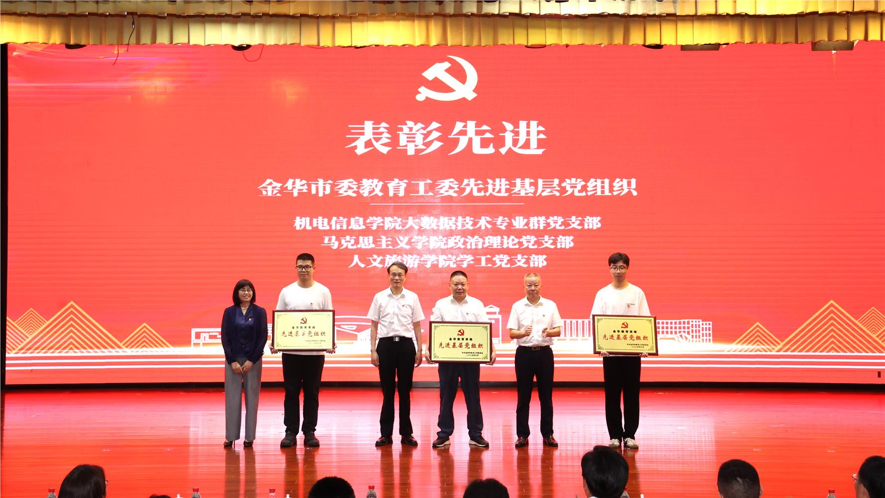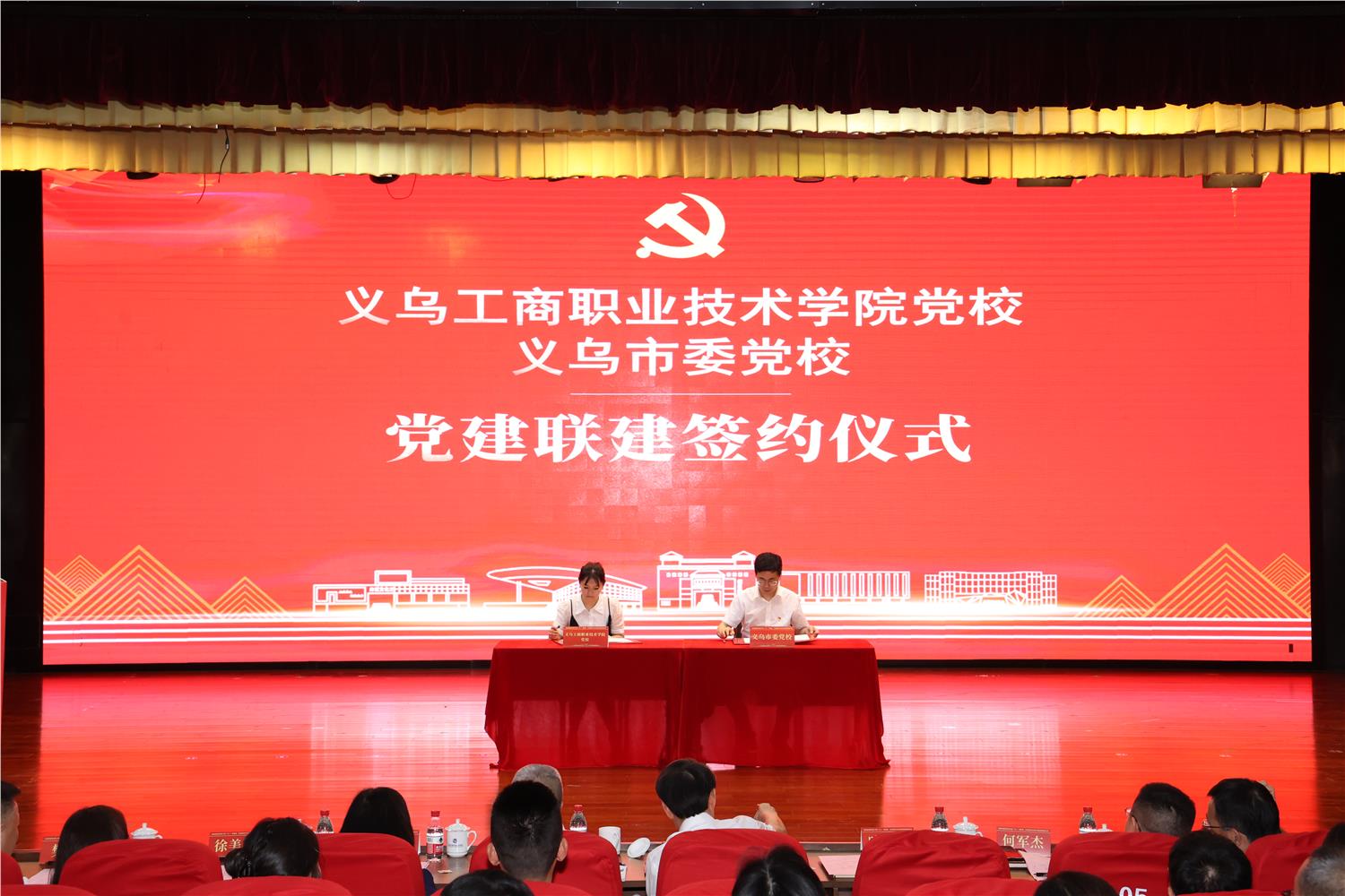 6月30日下午,“党建联建促发展 共迎‘七一’谱新篇”庆祝建党104周年暨党建联建活动在学校丹溪文化厅举行。金华市委教育工委专职副书记、金华市教育局党组副书记陈群,义乌市委常委、组织部部长、党校校长何军杰,义乌市委党校、浙江广厦建设职业技术大学、浙江横店影视职业学院、浙江金华科贸职业技术学院等相关工作分管领导,学校党政领导班子成员出席;义乌市委党校教师代表,学校全体中层干部、党员教师及老同志代表参加。