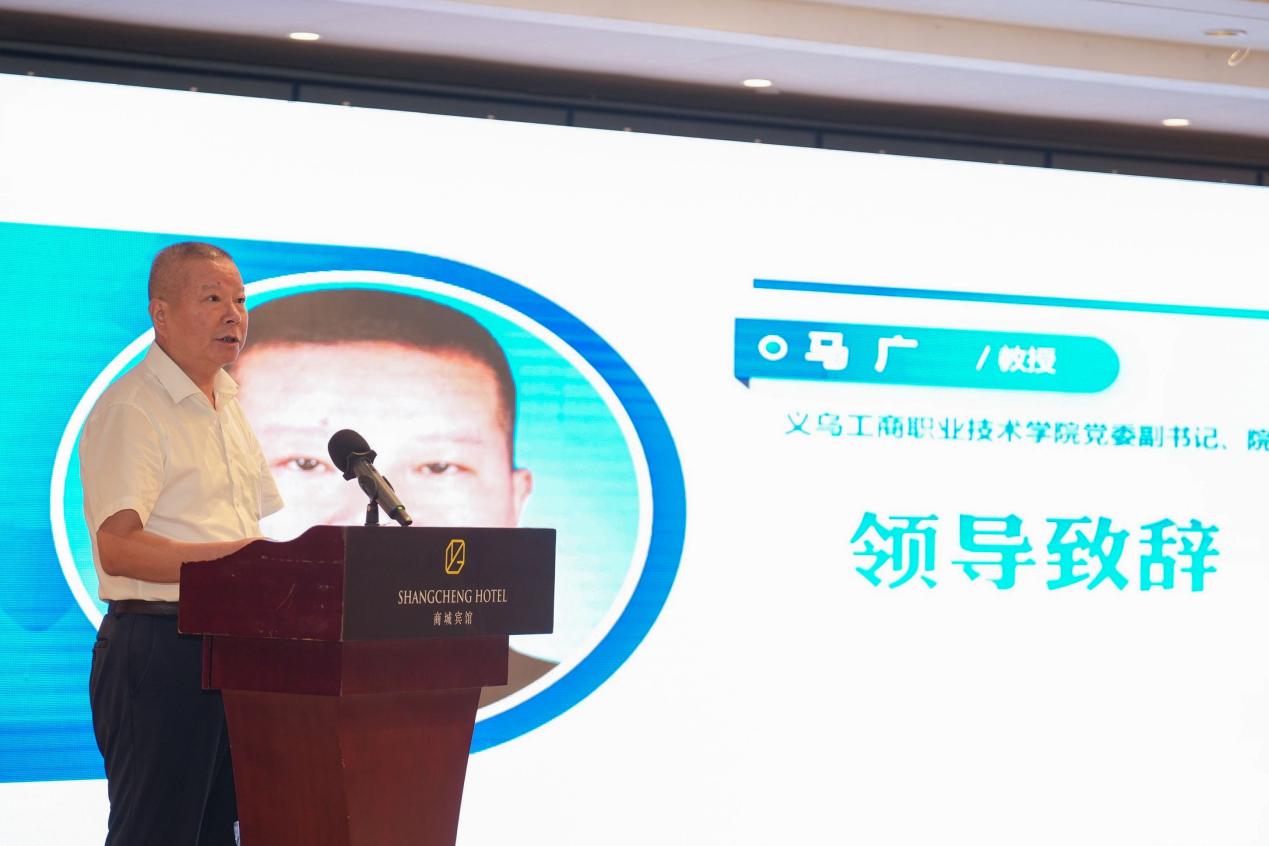 马广在致辞中代表学校向远道而来的领导嘉宾致以最热烈的欢迎和最诚挚的感谢,并简要介绍了学校办学特色成效及城校联动发展的“义乌模式”。他指出,义乌作为小商品制造与销售重要基地,正以数字化、智能化驱动传统制造业跃升。职业教育作为连接产业与人才的桥梁,必须主动融入变革浪潮,以数智技术为产业发展“强筋健骨”,以产教融合为人才培养“筑基培元”。