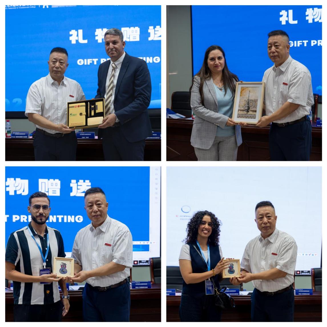 仪式尾声,双方互赠纪念礼品。樊曜向摩洛哥师生赠送具有义乌文化特色的礼物,摩方院校代表也回赠了来自摩洛哥的传统礼品。全场师生合影留念,为开班仪式画上圆满句号。