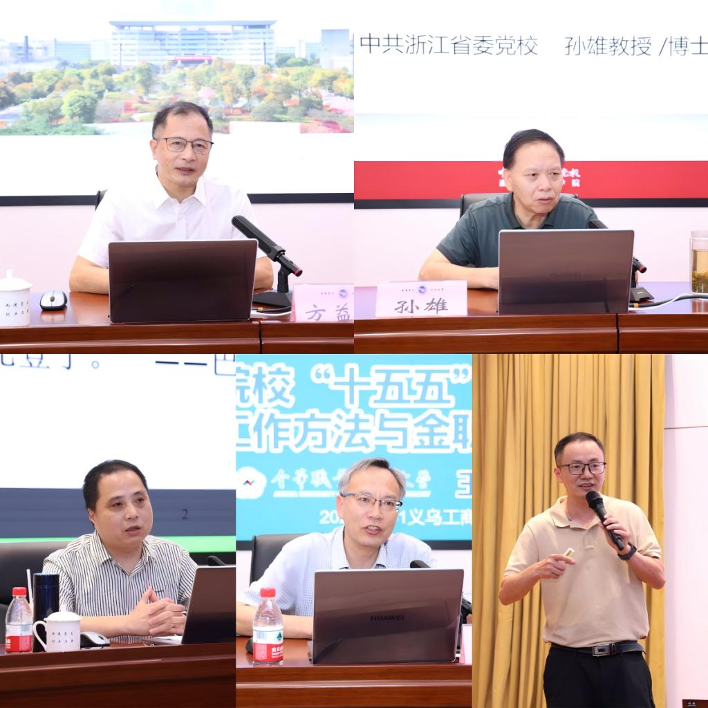 本次培训紧紧围绕“培根铸魂强作风 奋楫双高启新程”的主题,融合专题辅导、走访调研、交流讨论与总结提升等多种形式展开,着力提升干部队伍政治素养、治理能力与责任担当。浙江省委党校、浙江师范大学、金华职业技术大学、温州职业技术学院及义乌市中心医院等多位专家应邀进行专题授课。同时,组织领导干部赴浙江欣旺达动力电池有限公司、义新欧中欧班列始发港等开展现场教学,在产业一线感知发展趋势、探索融合新机、明确育人方向,切实推动产教融合与人才培养提质增效。其间,还组织干部开展中央八项规定精神自学,教育引导干部筑牢纪律意识、锤炼过硬作风。