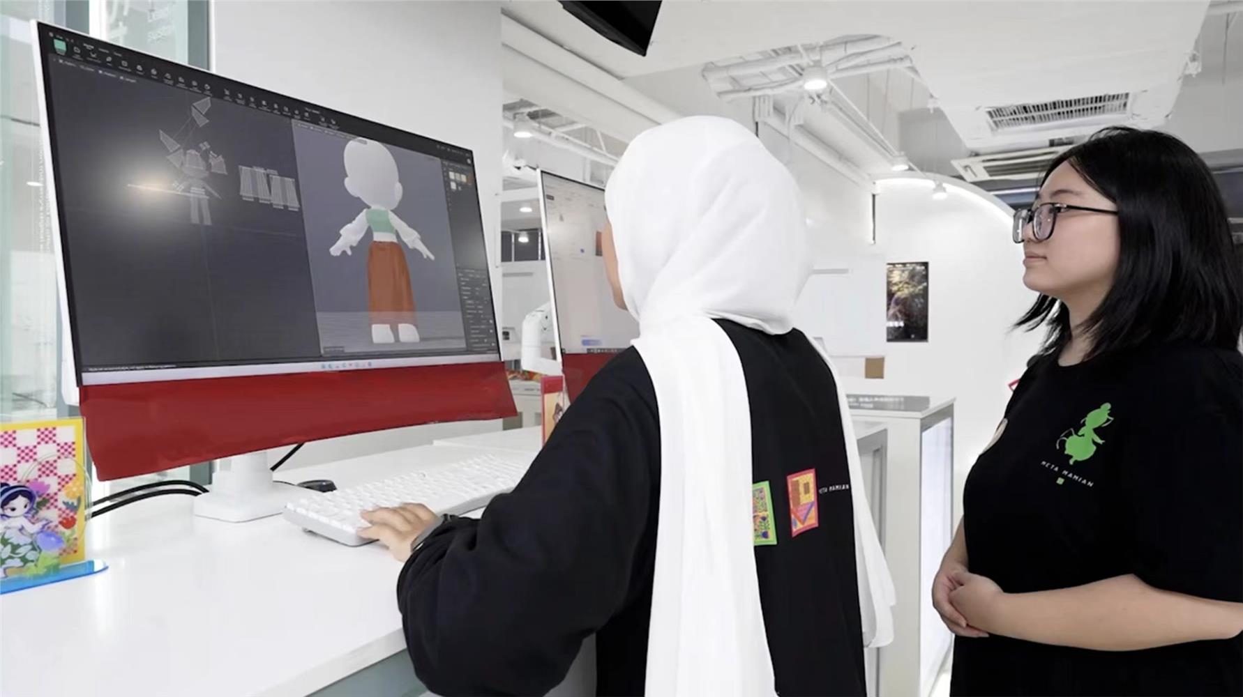 该项目实践了“线上协同一体化开发”与“跨国文化工作坊”相结合的双轨模式。其中,与佛罗伦萨自由美术学院联合举办的文化工作坊成为创意碰撞与难题解决的核心场域;美学共研,在工作坊中,师生从弘扬传统文化与全球视野出发,对马面裙的廓形、色彩与纹样提出了全新的视觉解读方案,例如建议采用更具现代感的色彩渐变来演绎传统织金纹样,以增强其对国际年轻受众的视觉吸引力;叙事共创,双方共同构思游戏的世界观与角色,将马面裙的传承故事置于一个连接东西方的奇幻背景下。在角色动态设计与场景氛围营造上的专业经验,极大地提升了项目的视觉叙事感染力。技术共融,针对“如何用三维技术最佳地表现裙摆流动感”等技术难题,在角色动画与材质渲染方面的专家提供了宝贵的技术路径建议,实现了艺术表现与技术可行性的最佳平衡。