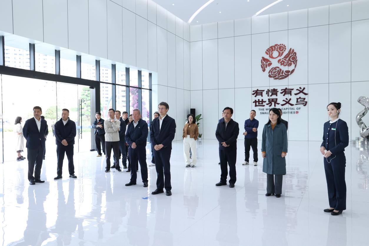 浙江中国小商品城集团股份有限公司党委书记、董事长陈德占热情接待了我校一行。在陪同走访过程中,陈德占详细介绍了全球数贸中心的整体规划、数字化市场建设进展、“AI+外贸”创新模式,以及新一代市场的战略布局与行业发展前景。他表示,全球数贸中心是义乌第六代市场的标杆,围绕新贸易、新市场、新地标三条主线,一体推进“人、货、场,信息流、货物流、资金流”六大贸易要素数字化提升。项目依托五大核心板块,实现垂直场景化、细分行业培育、数贸融合、商业上楼,推动市场积极融入数字生态,加快从“制造”向“创造”转型,助力“小商品”汇聚为“大市场”、催生“大产业”、服务“大开放”。
