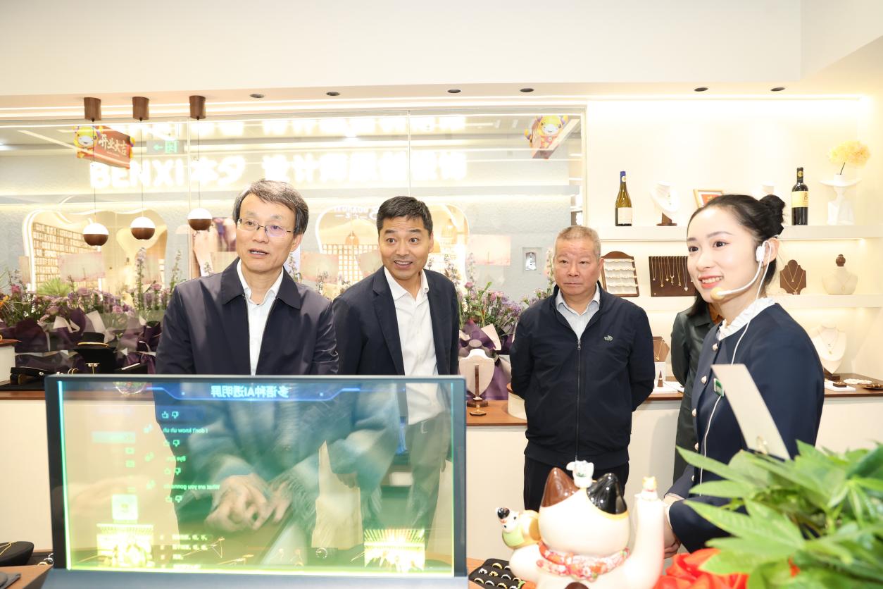 在全球数贸中心,自动生成多语名片、商铺智能导航、洽谈实时翻译、AI数字人广告等数字化场景层出不穷,生动展现了数字技术对传统贸易的赋能效应,为我校考察团队提供了一场关于新质生产力的直观、前沿的实践教学课堂。校领导一行与市场商户、企业代表亲切交流,沉浸式体验了一系列创新科技产品,重点询问了商户在电子商务平台运营与创意设计实践中的技术应用情况,深入了解了当前行业需求与市场格局的演变趋势,并由此延伸探讨了人才培养方向与教育教学改革路径。