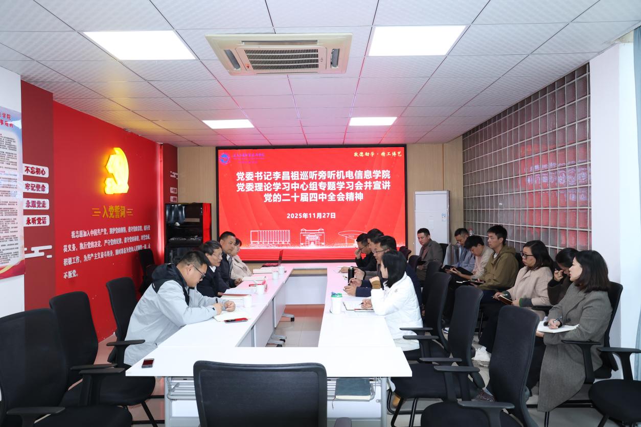 11月27日下午,党委书记李昌祖到机电信息学院开展党的二十届四中全会精神宣讲。宣传部、学工部、机电信息学院负责人及教师代表参加宣讲会。