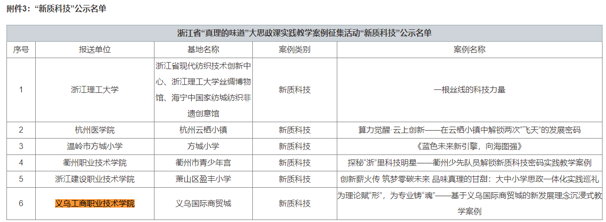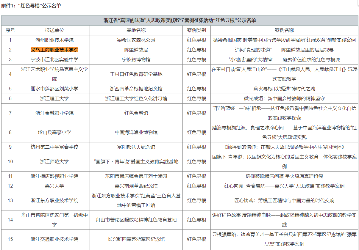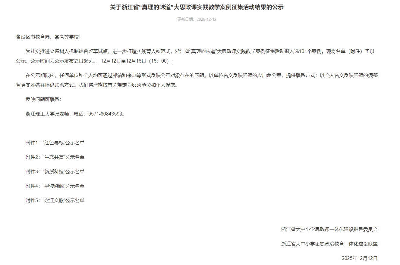 关于浙江省“真理的味道”大思政课实践教学案例征集活动结果的公示