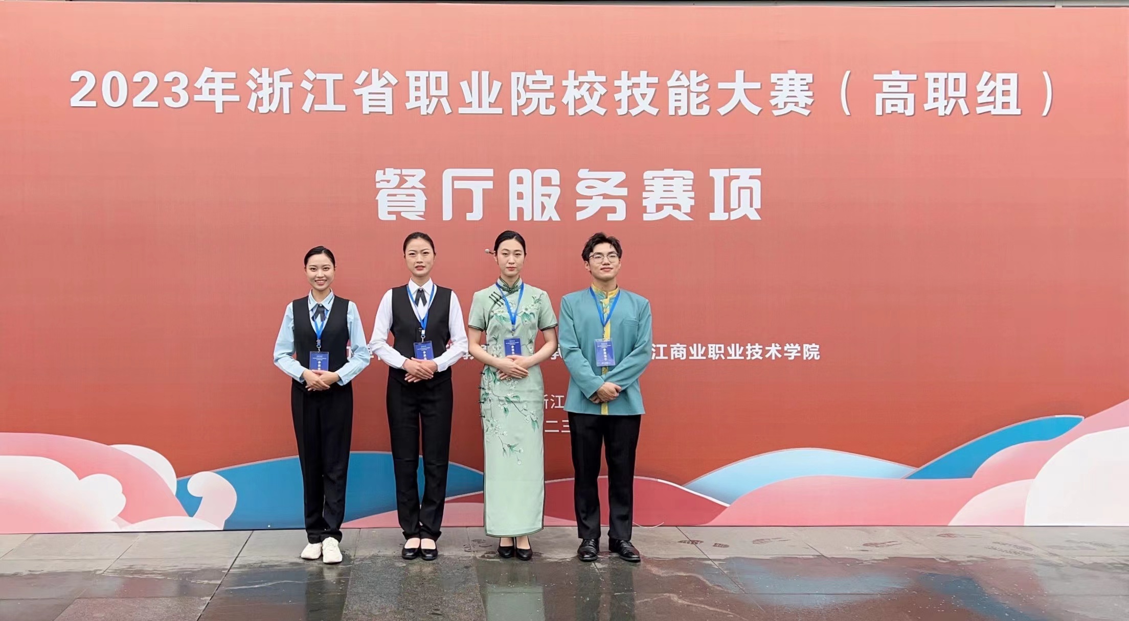 6月9日,人文旅游学院喜获2023年“餐厅服务”省赛获奖证书。该赛项于4月23日至25日在浙江商业职业技术学院举行,来自全省23所高职院校的44支代表队参赛。经过紧张激烈的角逐,我校章威和霍莹露两位同学组合的代表队获得团队二等奖,上官青宜和熊会敏两位同学组合的代表队获得团队三等奖。
