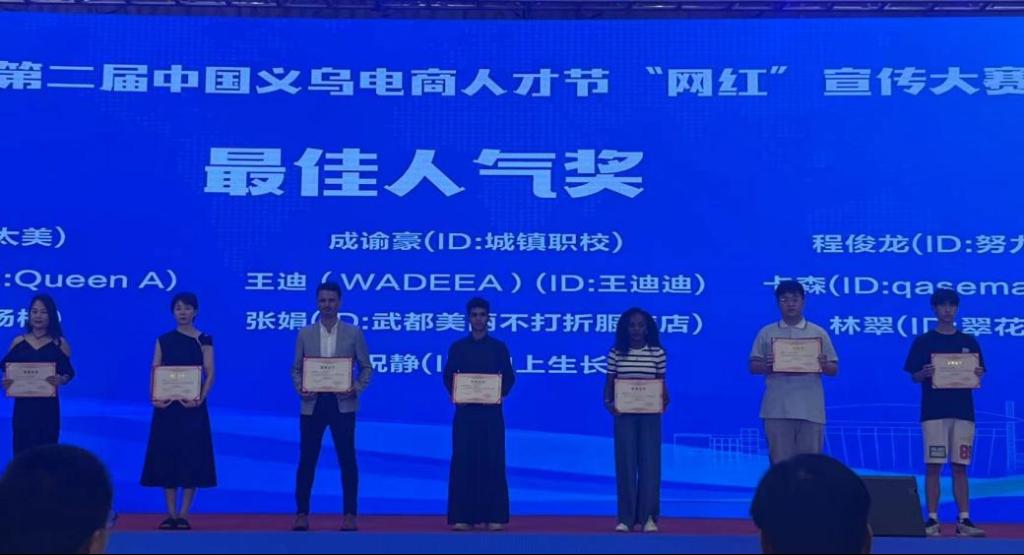 在由义乌市人力资源和社会保障局主办,义乌市就业和人才管理服务中心、义乌市人才发展集团有限公司承办,义乌好耶网络技术有限公司(义乌热线)协办的电商人才节“网红”宣传大赛中,国际教育学院国际学生王迪、卡森、爱莎、卡玛乐从自身的特点和经历拍摄发布短视频,获得了粉丝和观众的好评;在现场直播阶段,国际学生们用抖音、tiktok 、视频号等不同平台进行现场直播,让更多的人通过社交媒体了解了义乌电商博览会,扩大了本次电商人才节的全球传播力和影响力。国际学生的精彩表现赢得了大赛的三项奖“最佳人气奖”。其中王迪的短视频获得20万的高浏览量,受到了广大用户的喜爱。据悉本次“网红”宣传大赛有37家央媒省媒相继报道,各大平台总浏览量突破5500万。