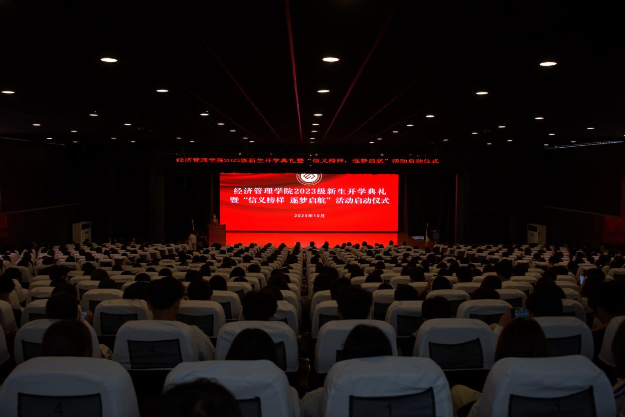 10月16日下午,经济管理学院2023级新生开学典礼暨“信义榜样、逐梦启航”启动仪式在丹溪文化厅举行。校党委副书记叶斯源、中国建设银行义乌分行副行长徐杨义、学院领导班子成员、专业负责人、新生班主任、教师代表以及学院2023级全体新生参加。