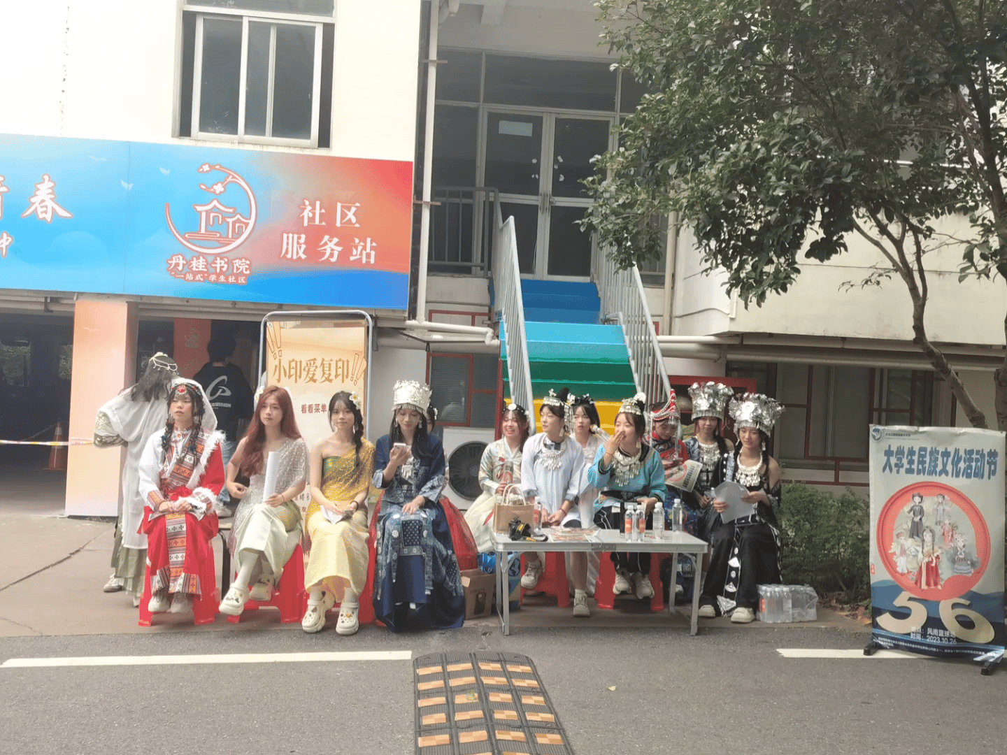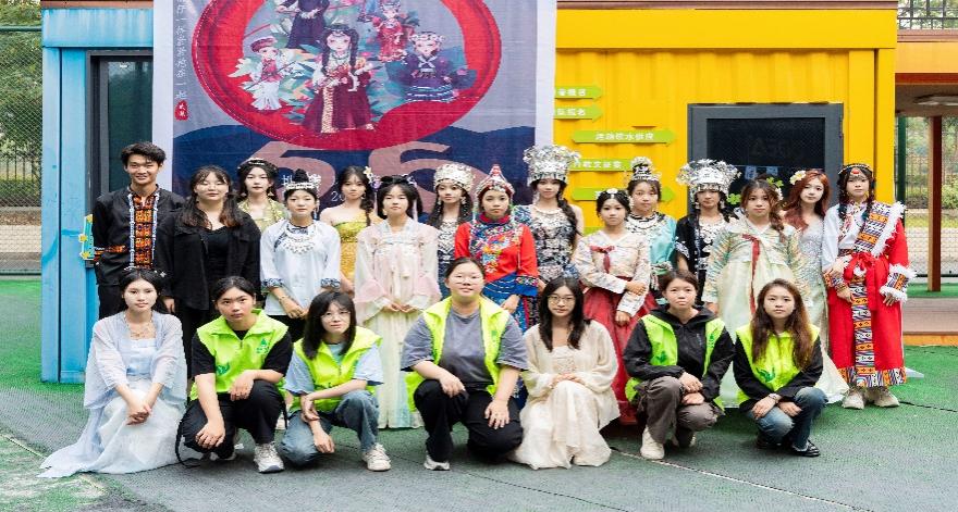 活动现场,会展专业学生为服装扮演者,身着苗族服装、侗族服装、水族服装、壮族服装、藏族服装、傣族服装、畲族服装、朝鲜族服装和汉服进行校园游走展览宣传。