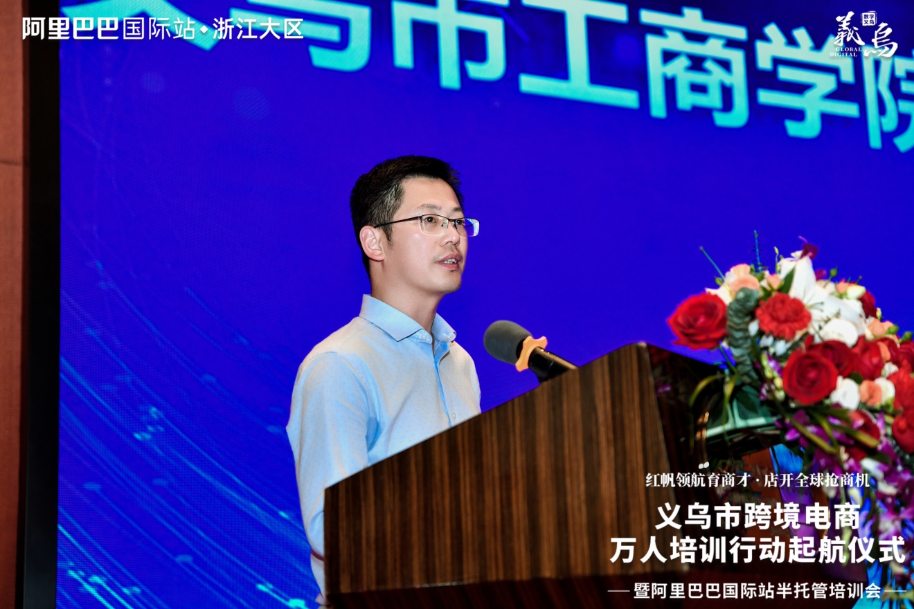 现场,义乌市相关负责人为义乌工商职业技术学院、义乌国际陆港电商城等8家“跨境电商人才培训先锋营”授牌,激励院校、国企、协会、平台、电商服务中心等机构共担电商人才培育重任,强化资源导入、培养衔接;义乌市场发展委、人力社保局、市场监管局、税务局、金融机构等单位组成“红帆领航店开全球”服务团,现场提供跨境电商企业注册、税务、金融等一站式服务。