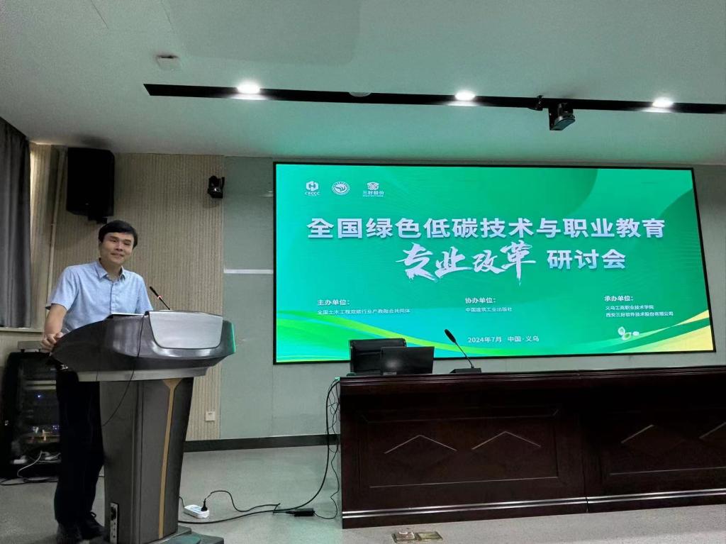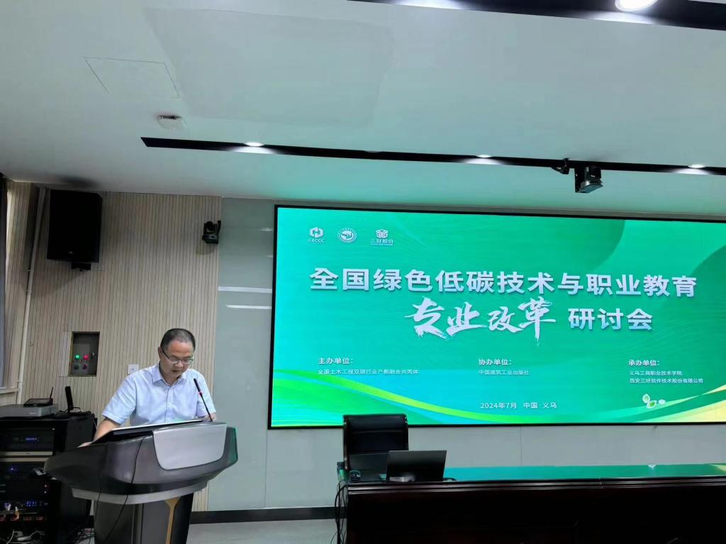 2024年7月22日,由全国土木工程双碳行业产教融合共同体主办,义乌工商职业技术学院、西安三好软件技术股份有限公司承办,中国建筑工业出版社协办的全国绿色低碳技术与职业教育专业改革研讨会在义乌召开。会议旨在全面学习贯彻习近平总书记关于绿色发展与职业教育的重要指示精神,促进传统专业与绿色低碳产业深度融合,深化现代职业教育体系建设改革与专业升级,提高职业教育适应性,高质量推进绿色低碳事业发展。来自省内外20所院校及相关单位的40余名领导、专家、学者参加了此次研讨会。