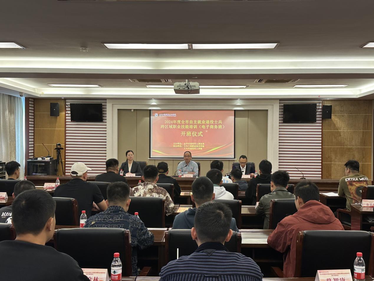 10月21日,2024年金华市自主就业退役士兵跨区域职业技能培训(电子商务班)在我校望道楼521开班。义乌市退役军人事务局副局长陈协斌,继续教育学院、马克思主义学院(公共基础学院)相关负责人出席会议。