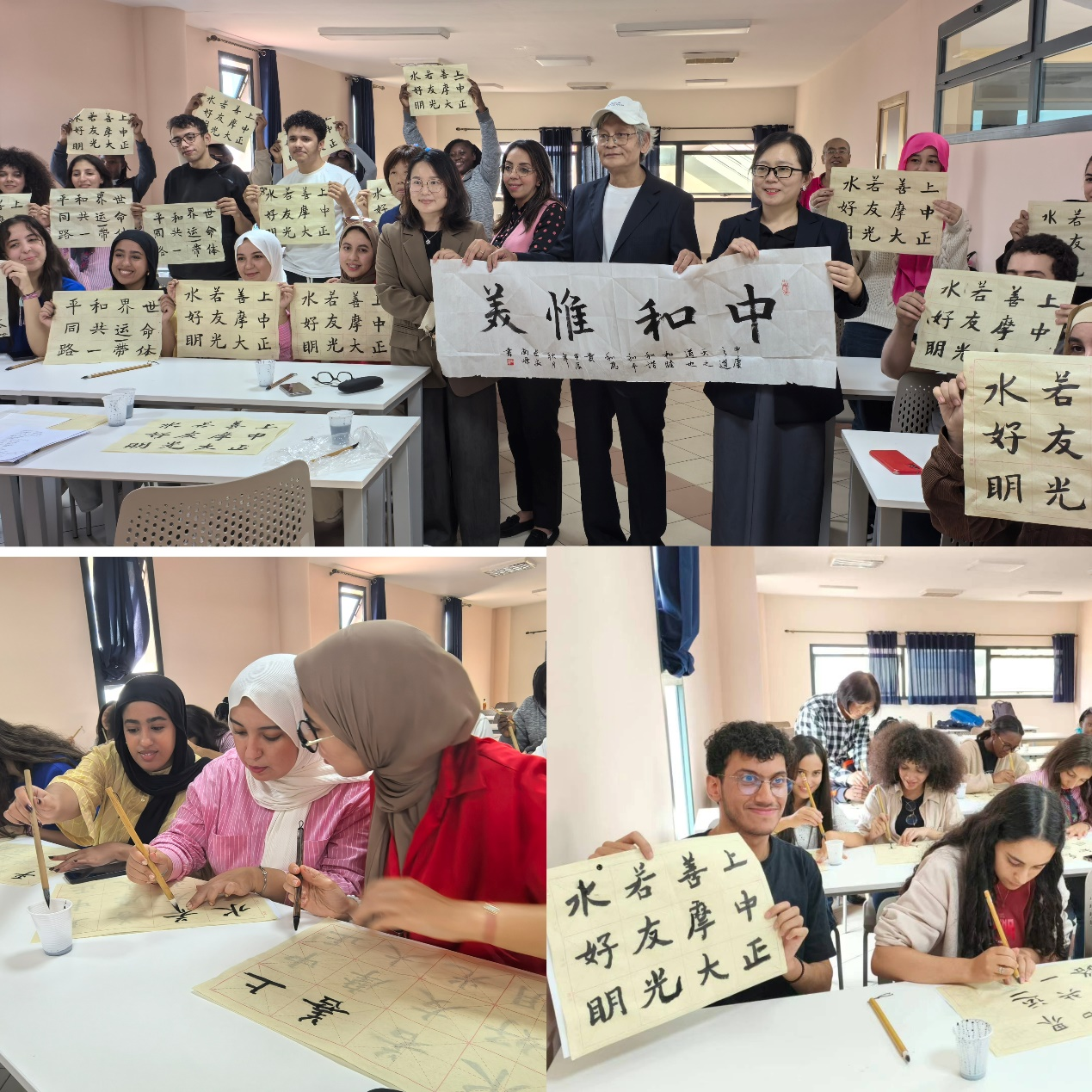 此次活动不仅展示了中国书法的独特艺术魅力,也成为摩洛哥义乌商学院第二课堂学习的一部分,旨在拓展学生的国际视野,提升他们的跨文化交流能力。未来,还将陆续推出“音韵传心——传唱经典中文歌曲”和“书笺寄情——互赠祝福传播友谊”等活动,进一步深化中摩两国文化的双向交流,让更多学生有机会体验和了解丰富多彩的中国文化。