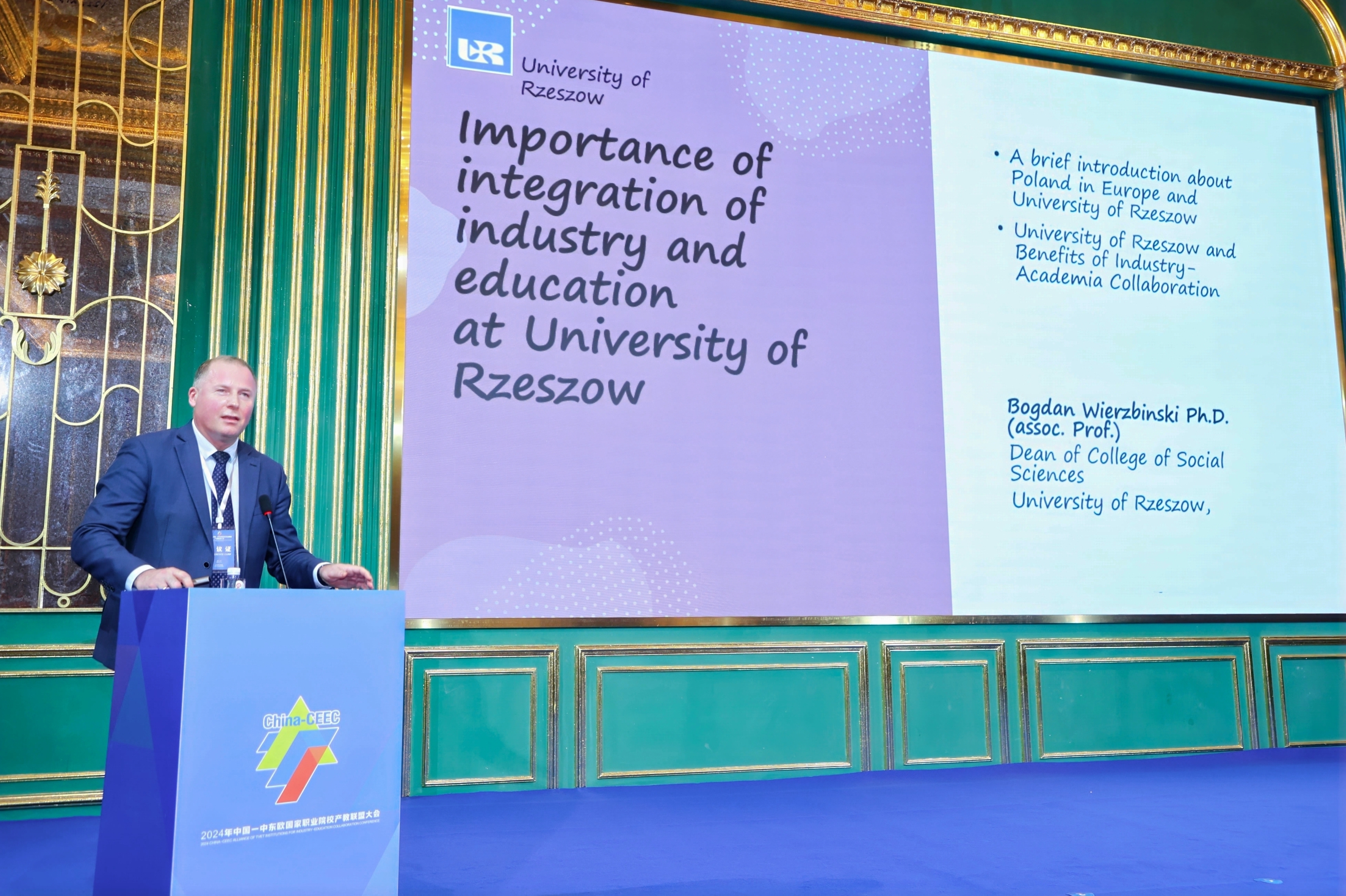 在主旨报告环节,教育部职业教育发展中心专家作了题为《职教体系建设新部署与“职教出海”新态势》的报告,详细解读中国职教发展最新政策,分析职教出海现状与国际产能合作需求,并对未来中国与中东欧国家职教合作提出了建议。波兰热舒夫大学社会科学学院院长博格丹·雅茨宾斯基(Bogdan Wierzbinski)以本校实践为例,分享了波兰高校在产教融合方面的做法和经验。