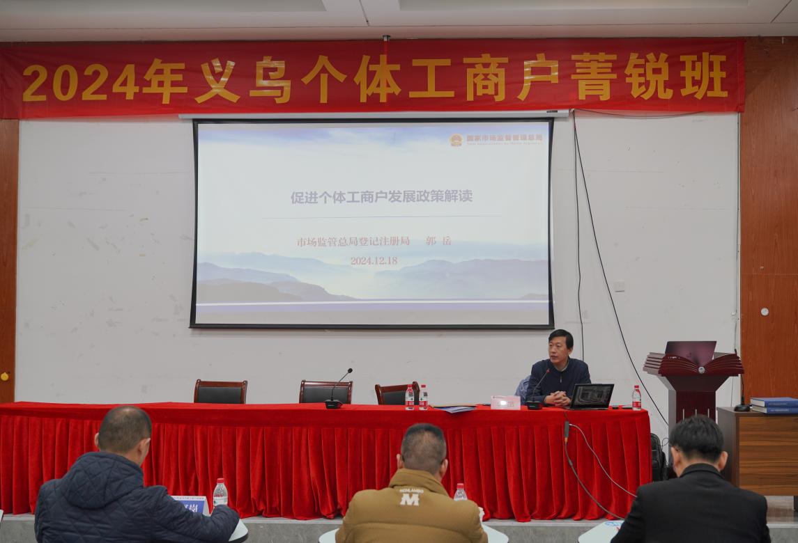 楼小东从义乌市个体工商户的发展现状和个体工商户发展的重要性两个方面展开,表示近年来,义乌市市场监管局全面贯彻落实《促进个体工商户发展条例》,着力培育好、服务好、发展好个体工商户,助推个体经济高质量发展。本次“菁锐班”的开设,是我局落实省委“三支队伍”建设部署、积极响应市场需求、推动个体工商户转型升级的重要举措,旨在提升个体工商户的技能素质、技能水平和就业创业能力,促进义乌个体经济持续健康发展。最后提出了几点希望和要求:一是要珍惜学习机会、二是要加强交流与合作、三是要发挥示范引领作用。希望个体工商户“菁锐班”的学员们身体健康、生意兴隆、阖家幸福。