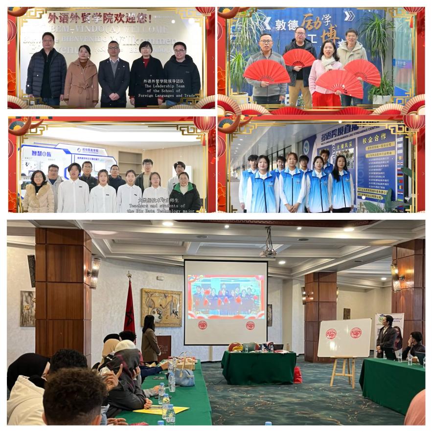 第一环节“华夏寄情,福暖人间”。活动以来自国内师生的温暖祝福拉开序幕。外语外贸学院和机电信息学院师生通过视频向摩洛哥的师生们送上了真挚的新年祝福。一句句温暖的话语,传递了跨越千山万水的深情厚谊,让摩洛哥师生感受到了来自母校的温暖与关怀。