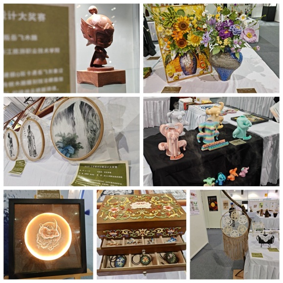大赛期间,第十三届浙江工艺美术精品博览会暨浙江工艺美术创意设计展同步启幕。23,000平方米的展区汇聚900多家参展商、超5万件展品,涵盖中国工艺美术大师作品、各地特色精品等多个展区。我校创意设计学院入围的优秀作品亮相工艺美术创意设计展区,与行业顶尖佳作同台展出,为市民呈现了一场传统与创新交织的视觉盛宴。