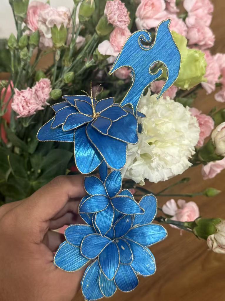 酒店管理与数字化运营专业的《艺术插花》课程别具一格,以“非遗掐丝珐琅点翠技法+西式桌花设计”为特色。学生们在课程实践中,精心完成了直立式盘花、花艺装置等二百余件佳作,并将插花艺术巧妙融入酒店宴会场景设计中,成功构建了“技艺·美学·产业”的价值闭环,为酒店行业平添了一抹独特的艺术风采。