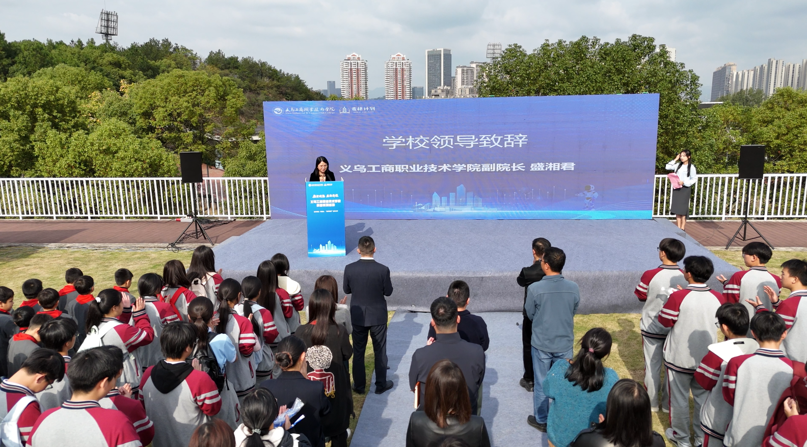 为与城市发展新动脉同频共振,共同谱写数字丝路新篇章,11月3日,义乌工商职业技术学院“启航·丝路新程”科普系列活动启动仪式在学校社科广场隆重举行。义乌市社科联专职副主席龚昌富、义乌工商职业技术学院副院长盛湘君出席活动,学校师生代表及来自义乌市城镇职校、宗泽小学的师生代表共同参加。