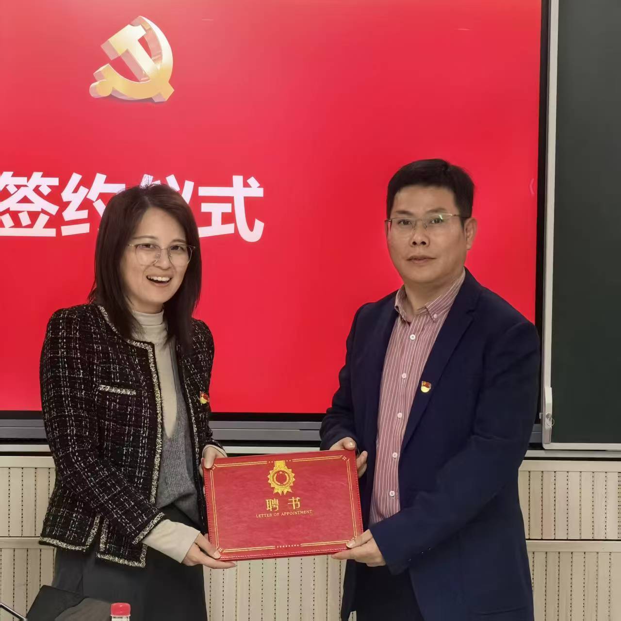 经济管理学院党委负责人为义乌市纪委亲清观察员金旭峰颁发“经管学院亲清指导员”聘书,双方互赠清廉文化作品,将清廉共建理念融入合作全过程。