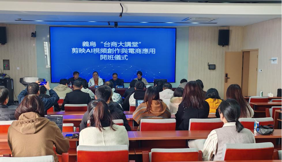 2025年11月29日至12月1日,由义乌市台办主办、学校承办的义乌“台商大讲堂”——剪映AI视频创作与电商应用培训在该校顺利开展。义乌市台办相关负责人、学校港澳台办负责人、义乌市台湾同胞投资企业协会代表及近40位参训台胞及台企员工共同出席开班仪式。