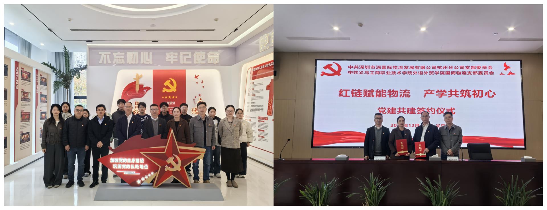 12月2日,中共义乌工商职院外语外贸学院国商物流党支部与中共深圳市深国际物流发展有限公司杭州分公司党支部联合开展党建联建活动。外语外贸学院党委负责人、国商物流党支部支委、教师及学生党员代表,深国际杭州分公司党支部书记、党员骨干共同参与活动,沉浸式感受物流产业发展脉动。