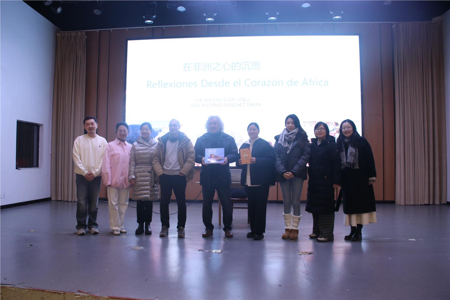 1月5日,由外语外贸学院主办的西班牙语讲座“在非洲之心的沉思”(Reflexiones desde el corazón de áfrica) 在大学生活动中心报告厅举行,西班牙知名哲学博士、人类学家、旅行家及探险家——何塞·安东尼奥·桑切斯·塔里法博士,带着他沉淀多年的非洲见闻与哲思,为现场应用西班牙语专业学生带来了一场深度讲座。这不仅仅是一次旅行分享,更是一次跨越学科边界,关于生命、时间、存在与人类本质的哲学叩问。