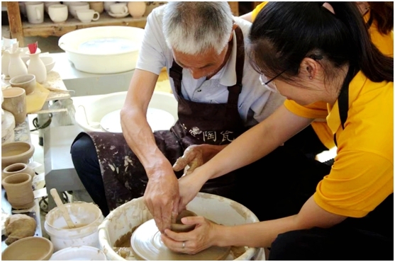 曾三满祖上三代都是制碗人,他从有记忆以来就开始接触碗窑陶瓷烧制手艺,至今已坚持60多年。曾三满说,做一口“碗”,并非易事。从挖泥到烧制,一整套流程下来,每一道工序都要细致专注,不能有一点马虎。他向大学生们展示了陶瓷的制坯过程,讲解了几种常用的艺术手法与创作技巧,并手把手指导大学生完成作品构思与制作。